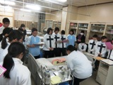 各班3~4名で、1ホールのガトーショコラを作り、みんなでおいしくいただきました。ガトーショコラを焼いている間には、交流学習の1年間のまとめとして、芦高祭ステージ発表の映像をみたり、3年次に行う手話ソングの予習をしたりと、充実した時間を過ごすことができました。