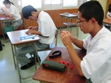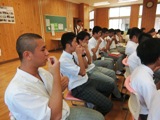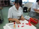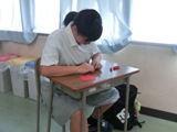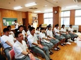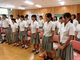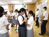 芦北高校福祉科3年生、芦北支援学校佐敷分教室3年生の交流学習を行いました。今回は、芦高祭で披露する手話ソングの練習です。はじめに、歌を覚えるために繰り返し歌いました。その後、分教室の生徒さんを手本として、手話を覚えました。今日は始めての学習でしたが、1番のサビの部分はどうにかマスターできました。これからも交流学習を通して絆を深め、芦高祭ではよりよい発表ができるように頑張ります♪