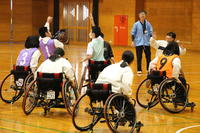 2月26日の午後、特定非営利活動法人ソーシャルインクルージョン研究センターより、山本様、平井様、東様をお招きし、車いすバスケットボール体験を行いました
