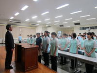 施設実習に向けて各学年の代表者が誓いの言葉を述べ、福祉科全員で実習への心構えを再確認しました。