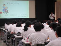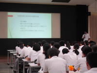 芦北町社会福祉協議会より太田様、草野様を講師としてお招きし、防災・被災地支援について御講話をいただきました。芦北町のハザードマップや避難所指定場所、芦北高校の災害時危険度、地震時の揺れやすさ等について学びました。