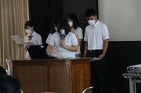 先週に引き続き、今日は福祉科2年生から1年生に向けて、昨年度の福祉体験実習の報告会を行いましたピース