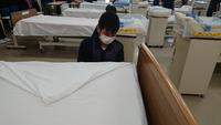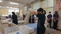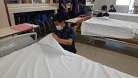 1年生の「生活支援技術」の授業では、毎年最初の課題として「ベッドメイキング」を行っています了解