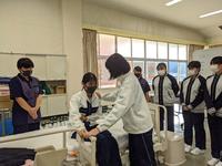 3年福祉科(介護類型)の生徒が利用者役になり、1年生の介助をチェックしてくれました