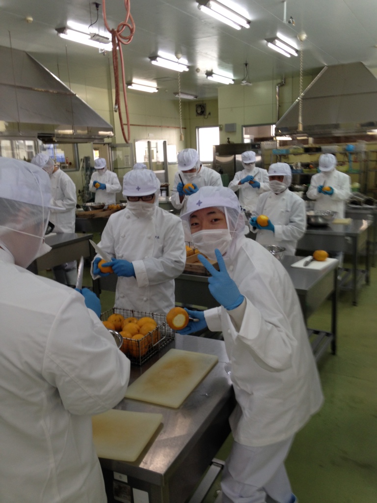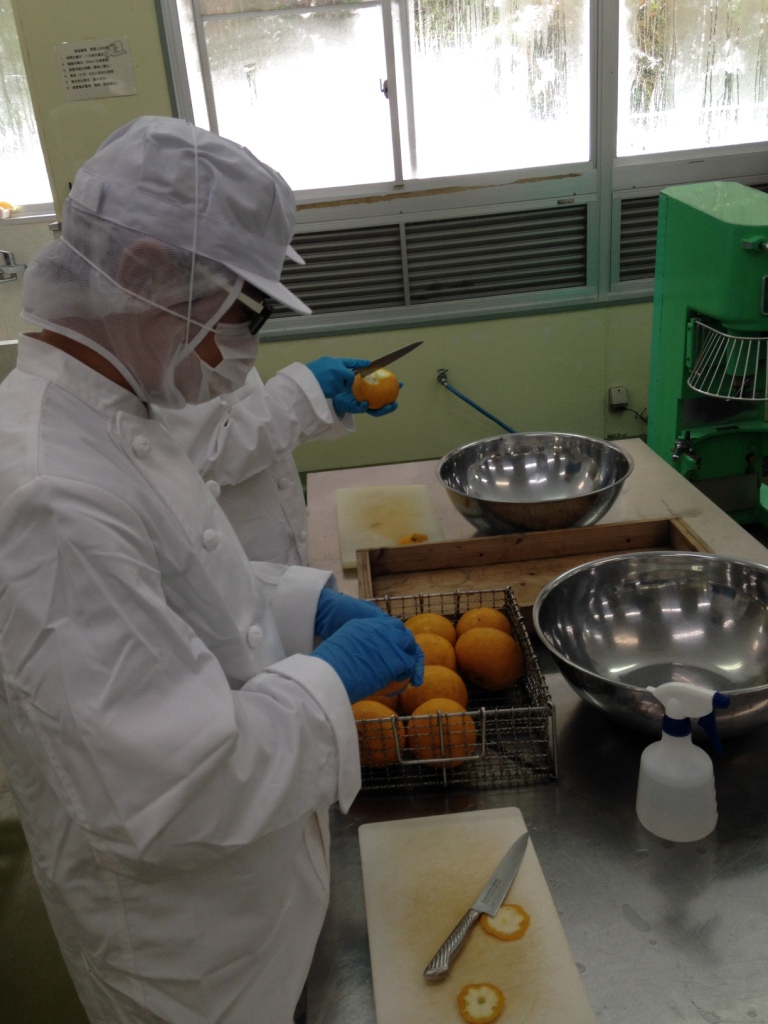 本日、1年生「総合実習」の授業で、マーマレード製造の下処理である“甘夏の皮むき”を