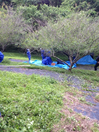 本日の1年生の食品製造の授業で『梅の収穫』を行いました。農場の梅園は山の中にあります。