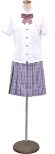 冬服の色味と変化をつけ、全体的に軽やかな印象に仕上げました。シャツボタンは黒にして知的なイメージに。女子はラベンターとピンクの可愛らしいチェックにこだわりました。男子のパンツも女子スカートと連動させチェック柄を採用。初夏に着ていて心が弾むような制服になればと思いデザインしました。