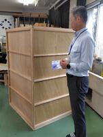 背の高い教頭先生と比べてもこの大きさ。 箱を運ぶのに大人4人必要です。 |