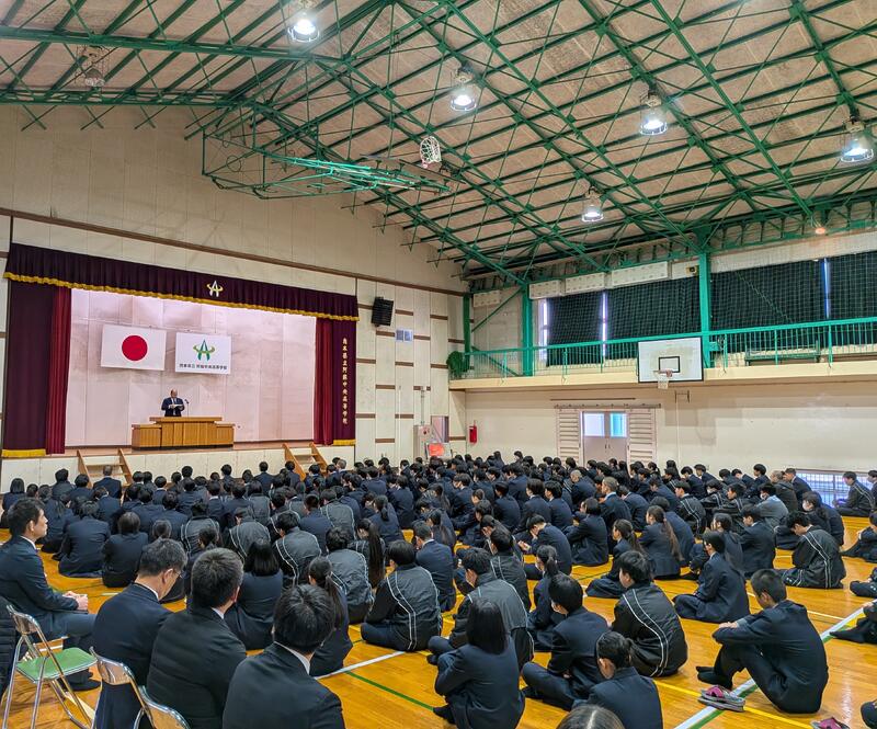 阿蘇中央高校の修了式が3月19日、阿蘇清峰校舎第一体育館で執り行われました。修了式の前には表彰式が行われ、各種大会で優秀な成績をおさめた部活動や皆勤賞などが表彰されました。