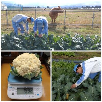 先週、カリフラワー、スティックカリフラワー(カリフローレ)、ロマネスコ、ブロッコリーも収穫を迎え、校内で販売しました。