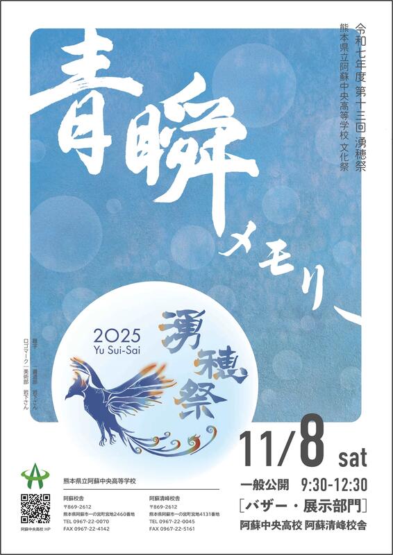 一般公開は11月8日(土)9:30~12:30、会場は阿蘇清峰校舎です。