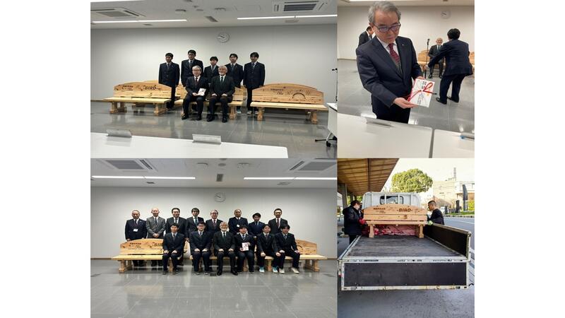 寄贈式後には木製ベンチをトラックに積み込み、各小中学校に向けて出発する様子を見ることができました。