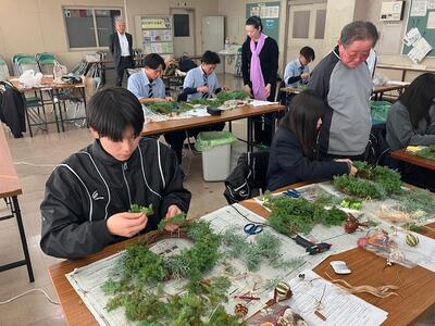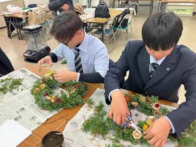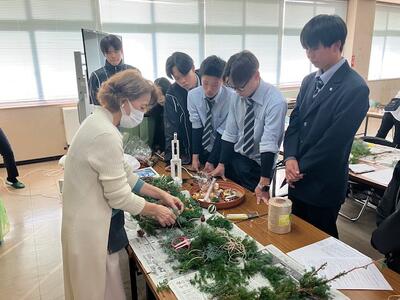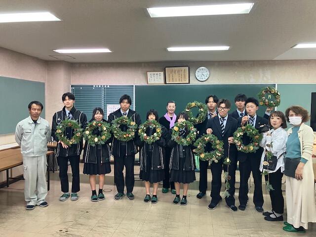 「みらいの技能士育成ステップ事業」により、県フラワー装飾技能士会より3名の講師に来ていただき、草花専攻3年生5名、2年生4名を対象に、クリスマスリースの制作を指導いただきました。2時間の講習会でしたが、プロの技術を学び、楽しくも充実した内容となりました。