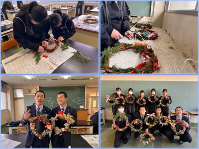 「クリスマスリース作りました!✨」(普通科2年、社会福祉科3年)