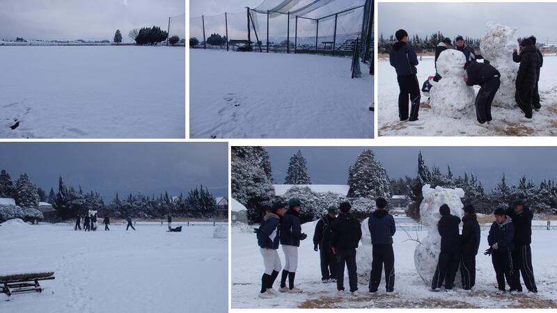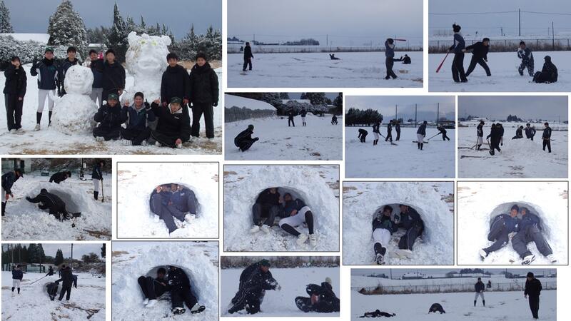本校、阿蘇中央高校野球場での練習風景(?)です。童心に返ってはしゃぎまくって、心身ともにリフレッシュしました。厳しい寒さにも負けず、高校野球に取り組んでいきます。