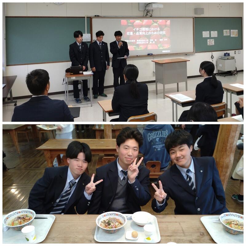 12月10日(水)、農業食品科野菜専攻の代表生徒が、「農高・農大一貫プロジェクト活動報告(発表)会」に参加しました。本校で取り組んでいるイチゴ栽培について発表し、質問やアドバイスをいただきました。