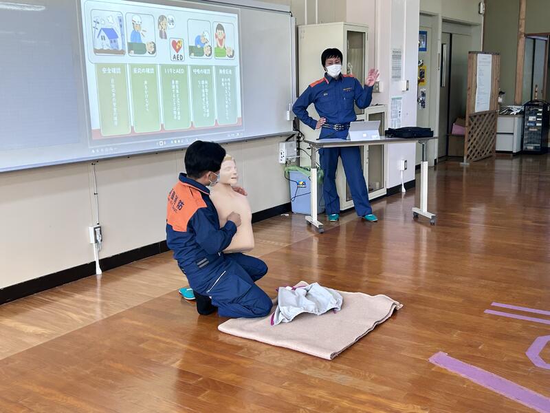 そのほかにもAEDの使い方、119番通報時の現場の状況を説明するロールプレイも行いました。