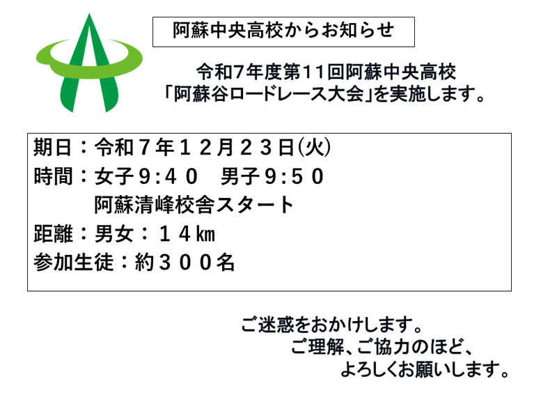 明日12/23(火)は阿蘇谷ロードレース大会が開催されます。