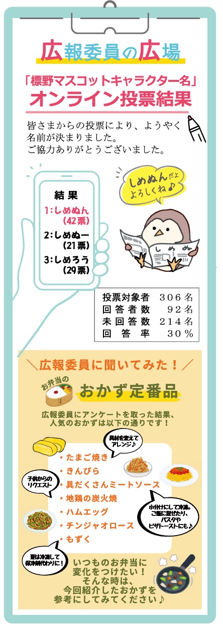 ▼第38号 2025_03月発行「マスコットキャラクター投票結果・お弁当のおかず定番品」