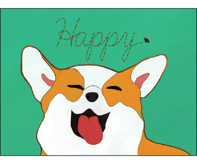 「入 賞」 普通科3年 長谷野さん 犬の動画を見るとこっちまで笑顔になるため、 犬をメインで描きました。また、文字のところを テントウ虫が通ったあとのようにして描きました。 |
