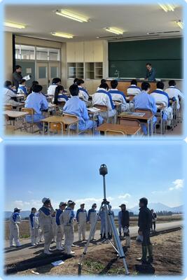 3月11日(水)に、農業食品科2年生(担い手類型)と緑と水の科学科1年生の生徒が、スガノ農機株式会社さんからレーザーレベラーの基礎知識やレベリングの必要性についての授業と、中九州クボタさんから実演をしていただきました!