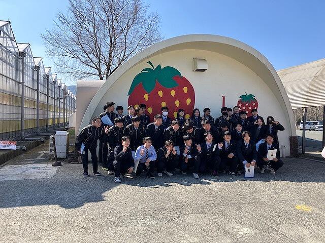 3月11日(水)、農と食の科学科1年で「先進地視察研修」として、東海大学「阿蘇くまもと臨空キャンパス」と有限会社「阿蘇健康農園」を訪問しました。東海大学の建物はガラス張りが基調となっており、通路からも研究室や実験室の様子や雰囲気がよく分かりました。農場もとてもきれいに整備されており、素晴らしい学習環境でした。阿蘇健康農園は、ヨーロッパ型の環境制御技術が詰まった大きなハウスにイチゴやレタスを栽培されている観光農園です。いちご狩り体験し、品種の異なる3つの品種をおなかいっぱい食べ比べしてきました。心も頭もおなかも満たされた一日でした。