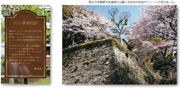 明治4年(1871)横井大平の熱心な建白と奔走によって、熊本藩が現在体育館のある高台にした洋式教育の学校である。教師には長崎にいたブルベッキの推薦で米国退役軍人のジェーンズを招いた。彼は通訳を使わずにすべて原語で授業を進め、厳格な中にも温情のある教育を行った。翌5年には明治天皇も授業を参観された。しかし、彼の感化でキリスト教を信じる学生達が花岡山で結盟を行ったことから、明治9年閉校となった。その門下からは徳富蘇峰、海老名弾正、横井時雄など多くの人材を輩出している。