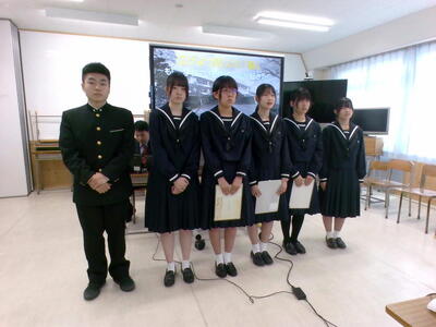 10月に行われた第72回熊本県高等学校家庭クラブ連盟研究発表大会において、本校家庭クラブは『広げよう防災の『輪』〜もし学校にいる時に災害が起きたら〜』というテーマで発表し、最優秀賞と教育委員会賞を受賞しました。