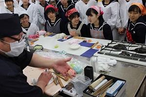 その後、実際に「桜」と「みかん」の2種類を作りました。苦戦しながらも、ワイワイと楽しくやっていました。