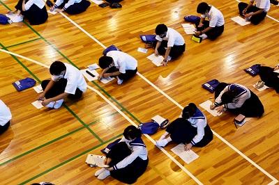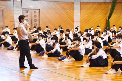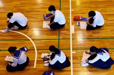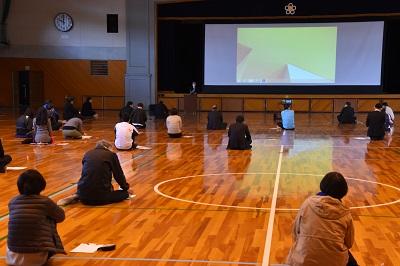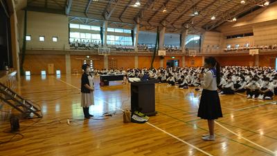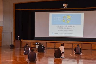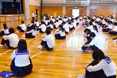 3月17日(水) 6・7限目、本校体育館で1・2年生が文系と理系の2グループに分かれて、