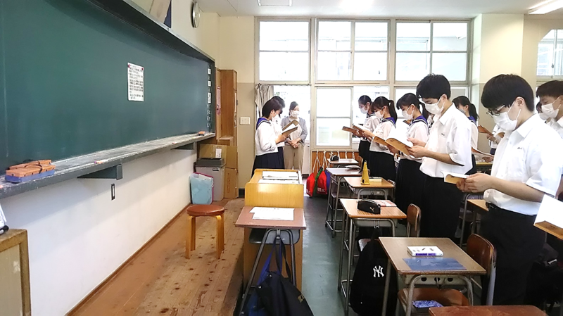 朝SHR時に、「いじめを許さない」宣言文を全校生徒で読み、みんなが安全に、安心して学校活動に励むことのできるように取り組んでいます。