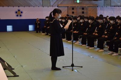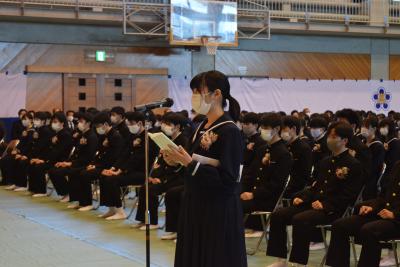 生徒会総務委員長が今年度初めて、1年生に向けて歓迎のあいさつを行いました。