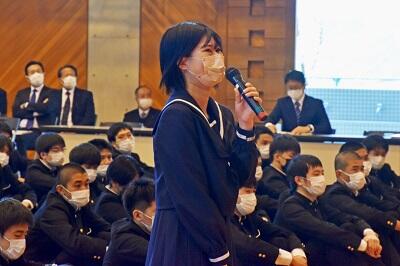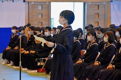 [生徒会総務委員長 応援の言葉 総務委員長 (3年 船江さん)]