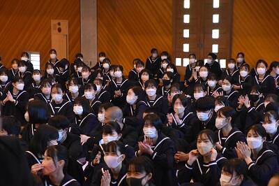 4月11日(月)に生徒会主催による「対面式」を体育館にて行いました。当日は入学2日目の新入生に対し、上級生を代表して生徒会総務委員長(生徒会長)が歓迎の挨拶を述べ、各委員会からの活動報告や動画での部活動紹介があり、新入生はどの話に対しても真剣な表情で聴いていました。これから高校生活をともにする仲間として新入生を心から歓迎し、新しい人間関係づくりの土台を構築させられる良い企画となりました。