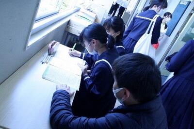 中学生と保護者の方を対象に、授業の様子と部活動の様子を見ていただきました。感染症対策を行ったなかで、400名以上の方が本校の雰囲気をじかに感じていただき、「よかった」「楽しかった」の声を多数いただきました。在校生も部活動の案内をしたり練習の様子を見てもらったりと、積極的に声かけをしました。