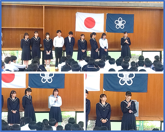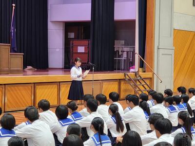 はじめに、本校教頭がごあいさつを申し上げ、続いて本校生徒会長が