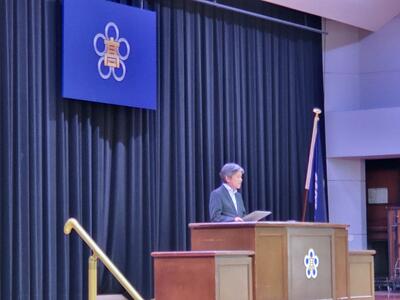 式典の結びに、本式典の主催者である北里柴三郎記念館館長の北里英郎様よりお礼のお言葉を賜り、