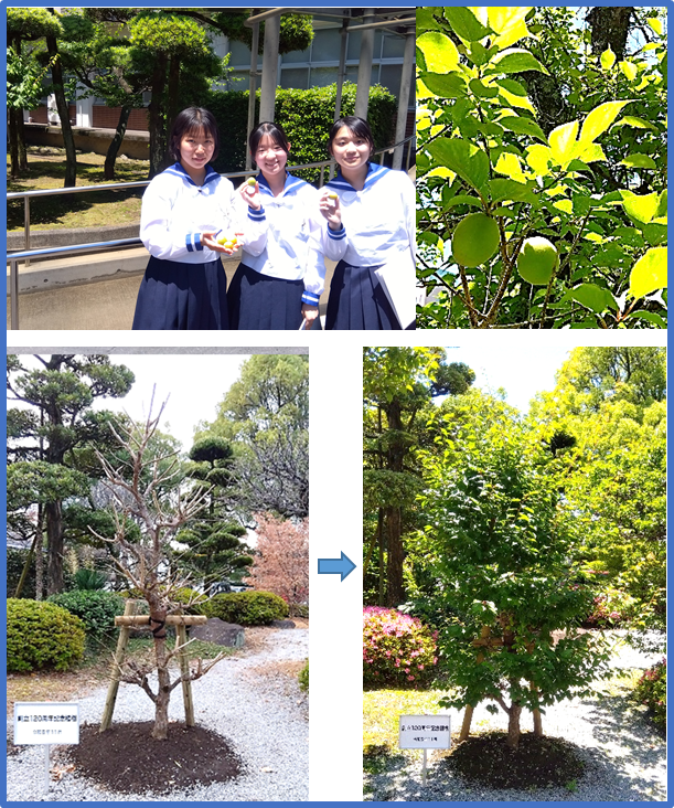 D1gram R6(生徒会だより)No.9 第一高校のシンボル『梅』 投稿日時 : 2024/05/15 学校サイト管理者 ☆ 第一高校のシンボル『梅』 ☆ 5月中旬、校内の梅の木は大きな実をつけています。 昨年に比べると数は少ないですが、立派な実もあり、今が収穫時期です。 創立120周年の記念で昨年11月に植えた梅の木も、葉をつけてぐんぐんと成長しています!!