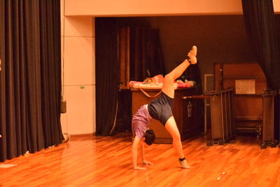 12月25日にある新人コンクールに向けて、一人一人が曲の特徴を生かし、クオリティを高め、全体の完成度を上げることを目標に頑張っています。また、今回踊るジブリの世界観を全員で創り出すことです。柔軟性を生かすため毎日ストレッチを続け、幅広い豊かな演技ができるようにしていきます。