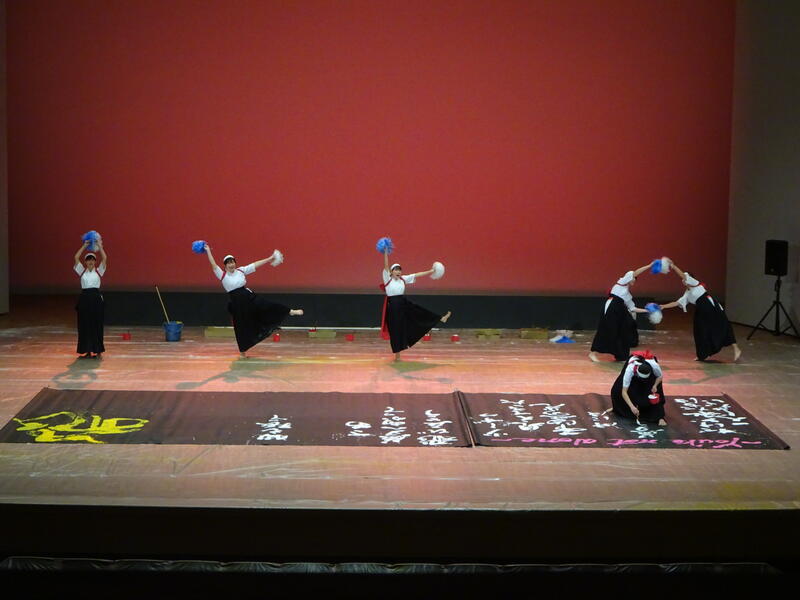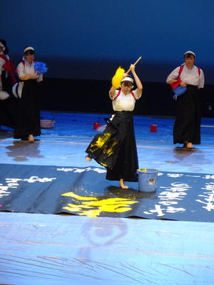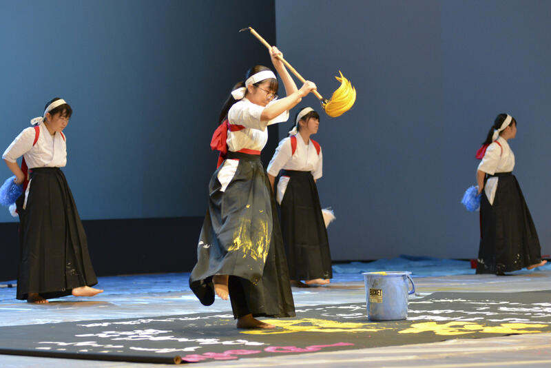 書道部は毎年恒例の書道パフォーマンスをステージで披露しました。