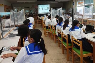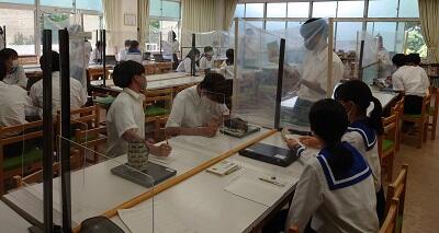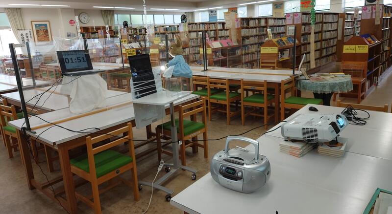 体育館が使えないので、発表者が図書館から、聞き手は各クラスから、meetを使ってオンラインです。