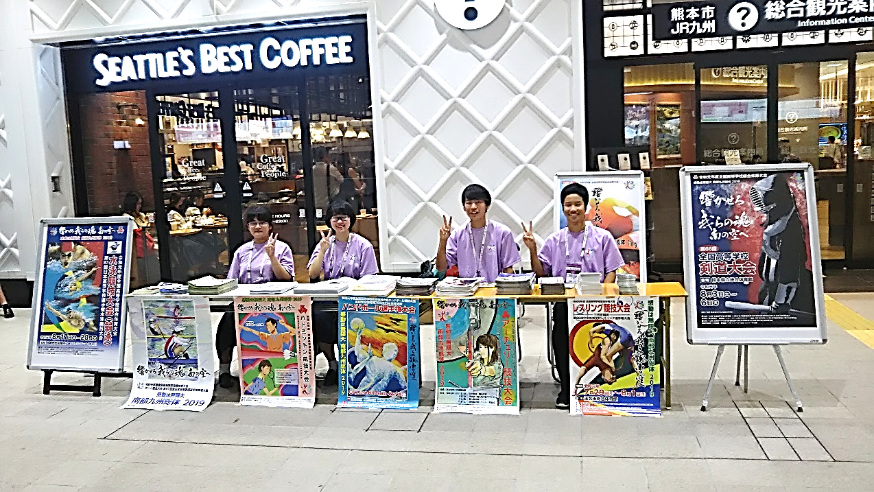 8月4日(日)に熊本駅(新幹線改札口前)で、熊本で開かれるインターハイの総合案内所の運営を行ってきました。