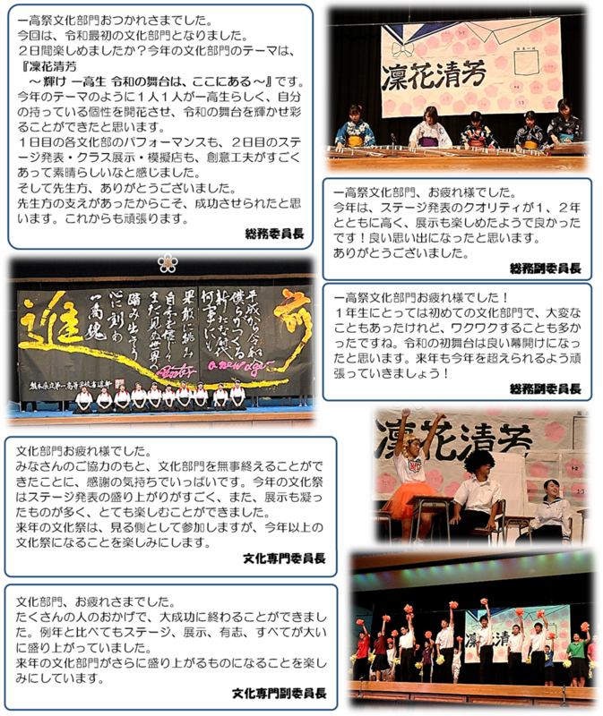 ☆ 令和元年度(2019年度) 第42回 一高祭文化部門 ☆ 生徒会メッセージ
