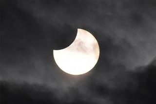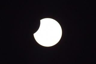 1月6日午前に部分日食が観察されました。熊本では雲を透して見えていた太陽が、8時39分から月に隠されて欠け始め、9時47分には食分0.3の食の最大となりました。11時3分の食の終わりごろには雲も晴れて、欠けた太陽を観察することができました。地学部は本校屋上から、日食の経過を天体望遠鏡を使って観察しました。センター試験直前演習で模擬試験を受験していた3年生も、試験の合間に日食グラスを使って欠けた太陽を観察しました。