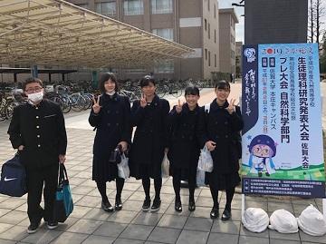 地学部2年生は2月2~3日、佐賀大学で開催された九州高等学校生徒理科研究発表大会で「熊本地震の被害3~熊本市の被害と水前寺断層との関係~」について、1年生は3月3日、長崎ブリックホールで開催された日本気象学会九州支部主催のジュニアセッションin九州で「火星の南極冠の縮小2018-2019」について、それぞれ研究発表を行いました。昨年秋の発表内容からさらに調査研究を進めて、新たに分かったことを加えて発表しました。2年生はこの大会の地学部門で優良賞を受賞しました。