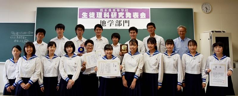 2019年度の科学研究物展示会(第79回科学展)で熊本県教育委員会賞や優賞を受賞した、「火星極冠の消長」、「熊本地震の被害4~熊本地震の余震と水前寺断層~」、「地球観測衛星を利用した土砂崩壊箇所の抽出」の研究成果が、熊本県立教育センターHPの『令和元年度(2019年度)入賞作品集「私たちの科学研究」』に掲載されています。