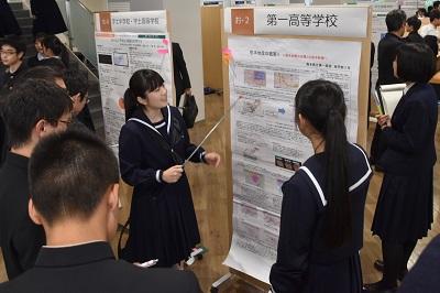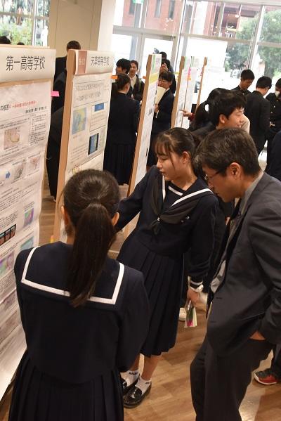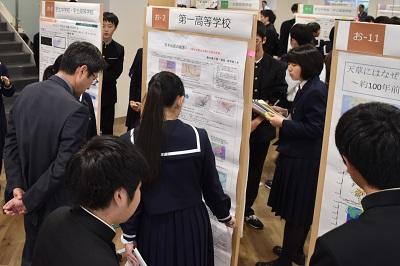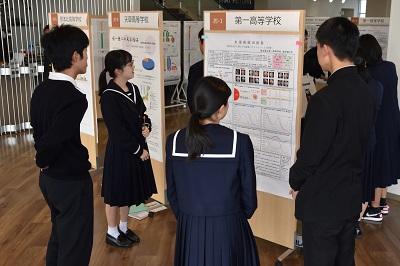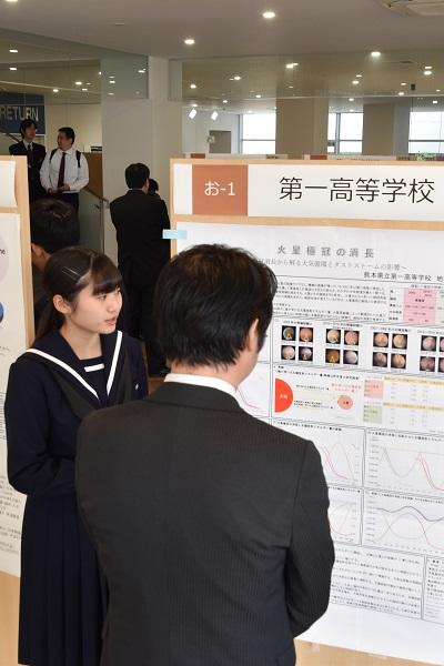 日本学生科学賞の熊本県審査が11月6日に行われ、地学部の「火星極冠の消長~極冠消長から解る火星大気の循環とダストストームの影響~」が高校の部で最優秀賞となり、県代表として中央予備審査に進みました。また、KSH(熊本県スーパーハイスクール)生徒研究発表会が12月1日に崇城大学で行われ、県内18校から405人の生徒が参加して、122件の研究成果をポスターセッションで発表しました。地学部も3件の研究を発表しました。