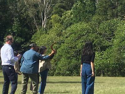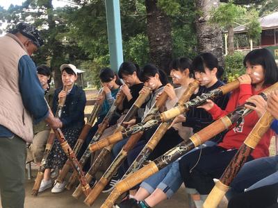 ディジュリドゥという木製の長い笛のような楽器の演奏の仕方を学び、太鼓を叩き、皆で踊りました。