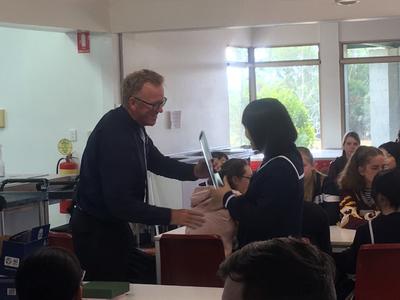 60人の生徒一人ひとりに手渡してくれましたので時間がかかり、