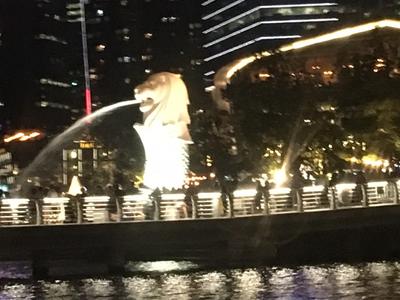 夕食の後は、リバークルーズで昼間見たマーライオンや
